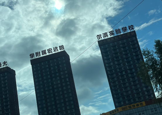 它的全名是《上海外国语大 - 学附属宏达哈 - 尔滨实验学校》。