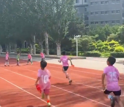 上一棒要到的时候,孩子们都转过身准备接棒。