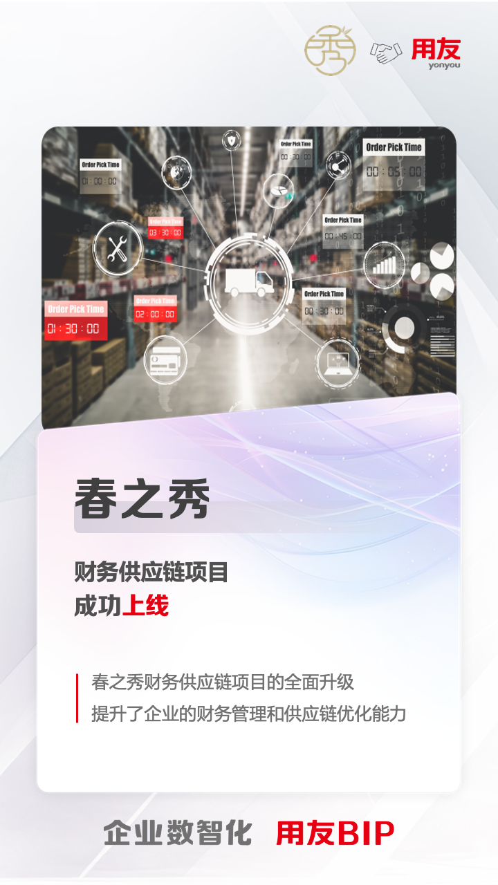 春之秀财务供应链项目的全面升级,不仅提升了企业的财务管理和供应链优化能力,还为企业的发展注入了新的活力和动力。未来,春之秀公司将携手用友继续深化数字化转型,积极探索更多创新的管理模式和业务形态,实现高质量发展!