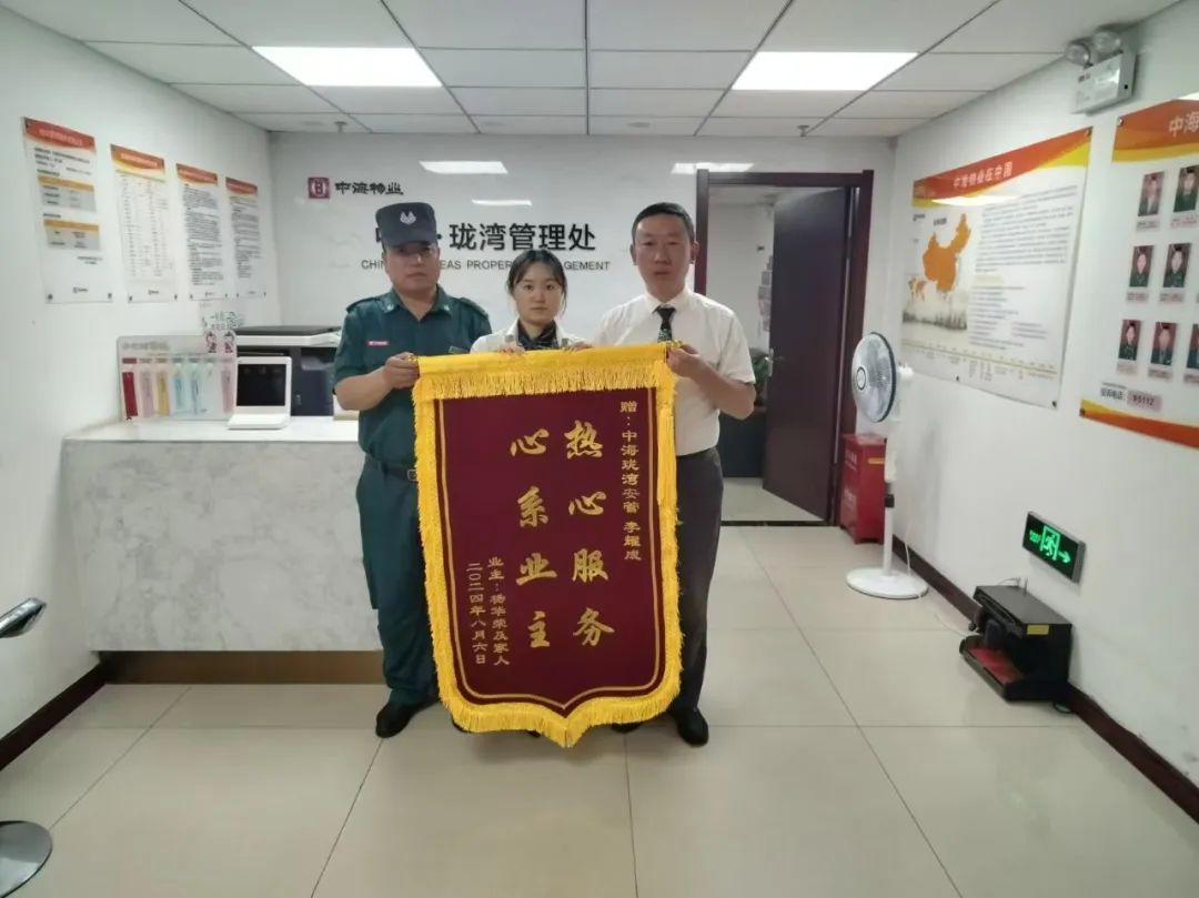 中海珑湾安管员李耀成入职中海三年有余,在平凡的岗位上做到不平凡,得到业主充分肯定,业主特送“热心服务 心系业主”锦旗一面,以示肯定。