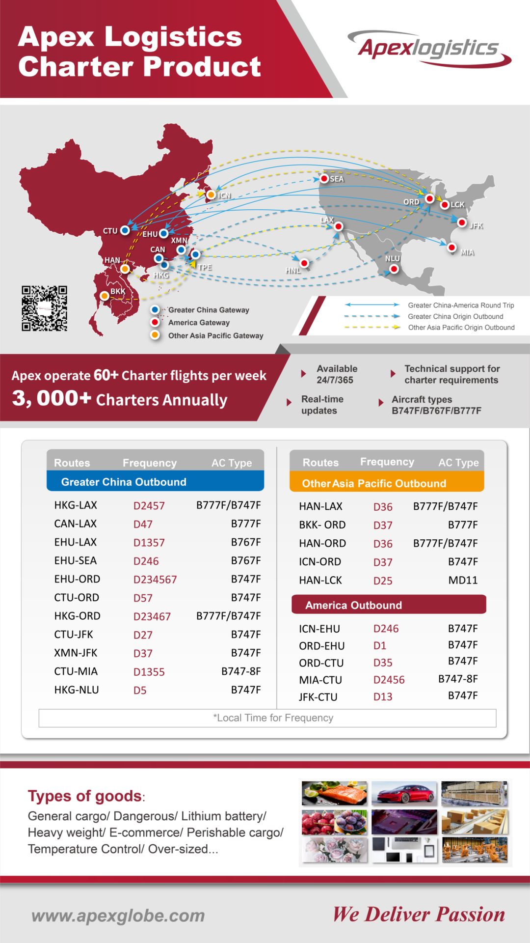 长期执飞中国至美洲往返定班包机线路。
