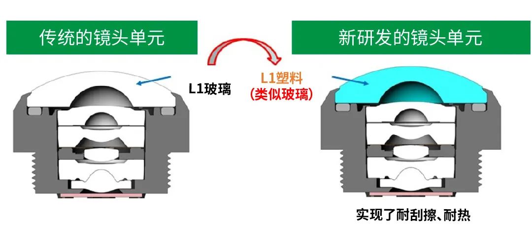 随着先进的汽车安全技术的普及和自动驾驶技术的进步,许多新上市的汽车现在都配备了摄像头。车载摄像头的镜头通常由多枚镜片组合而成,从成本角度来看,采用塑料非球面镜片变得越来越普遍。但是,为了确保镜头表面强度,大多数情况下,只有最外侧的镜片是由玻璃制成。由此,尼得科仪器株式会社利用其塑料透镜技术,将高硬度塑料镜片用于车载摄像头的鱼眼镜头的最外层透镜(L1),并成功实现了该镜头单元的产品化。