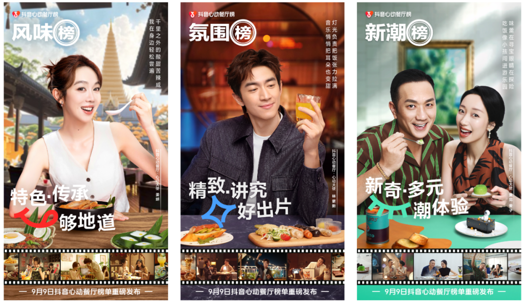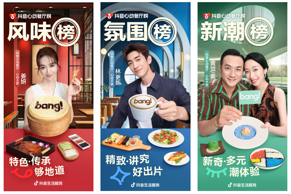 抖音洞察到用户更细分的需求,从风味、氛围、新潮三个维度出发,重磅发布了不只好吃的心动餐厅榜。让我们跟着代言人林更新、姜妍、黄觉&麦子一起去探探店:
