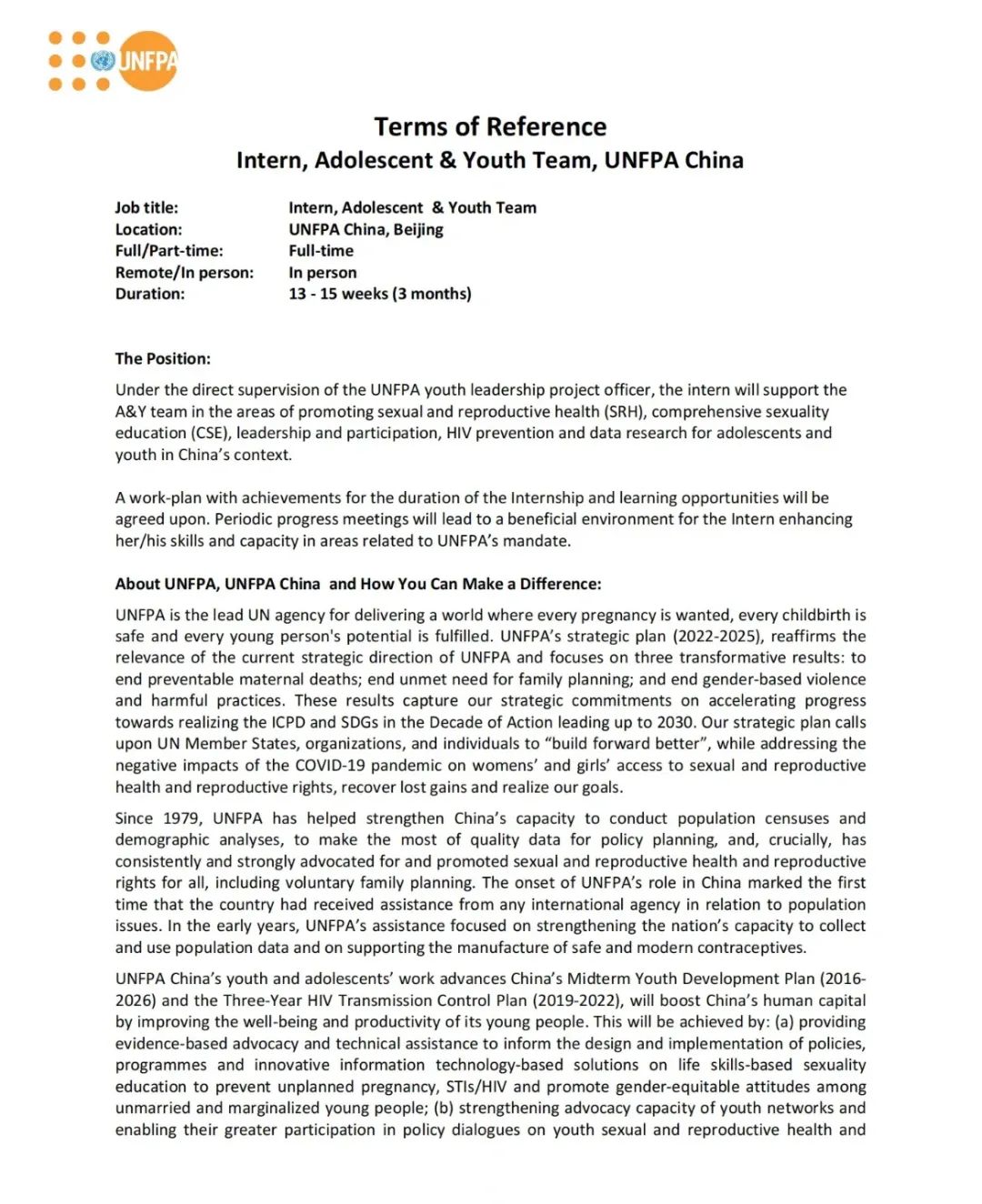 联合国人口基金(United Nations Population Fund, UNFPA)性别支持工作组、青年工作组、传播工作组正面向全校范围内招募实习生,期待你的加入!