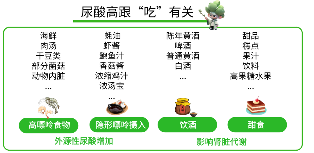 但是尿酸高并不能完全归咎于“吃”。毕竟“吃”这种外源性尿酸只占20%。内源性代谢紊乱,导致尿酸排泄不足,引起的尿酸水平升高也不可忽视。