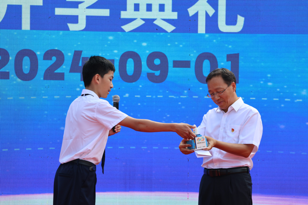 在全校师生的热切目光和激动的倒数声中,石景山区委副书记、区长李新,石景山区委教育工委副书记、区教委主任、区政府教育督导室主任张琳走上舞台,与幸运同学一同走向那个充满魔力的梦想礼盒——一个装载着无限可能和梦想的宝箱。