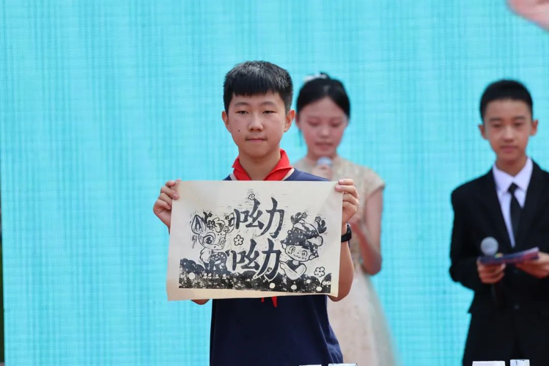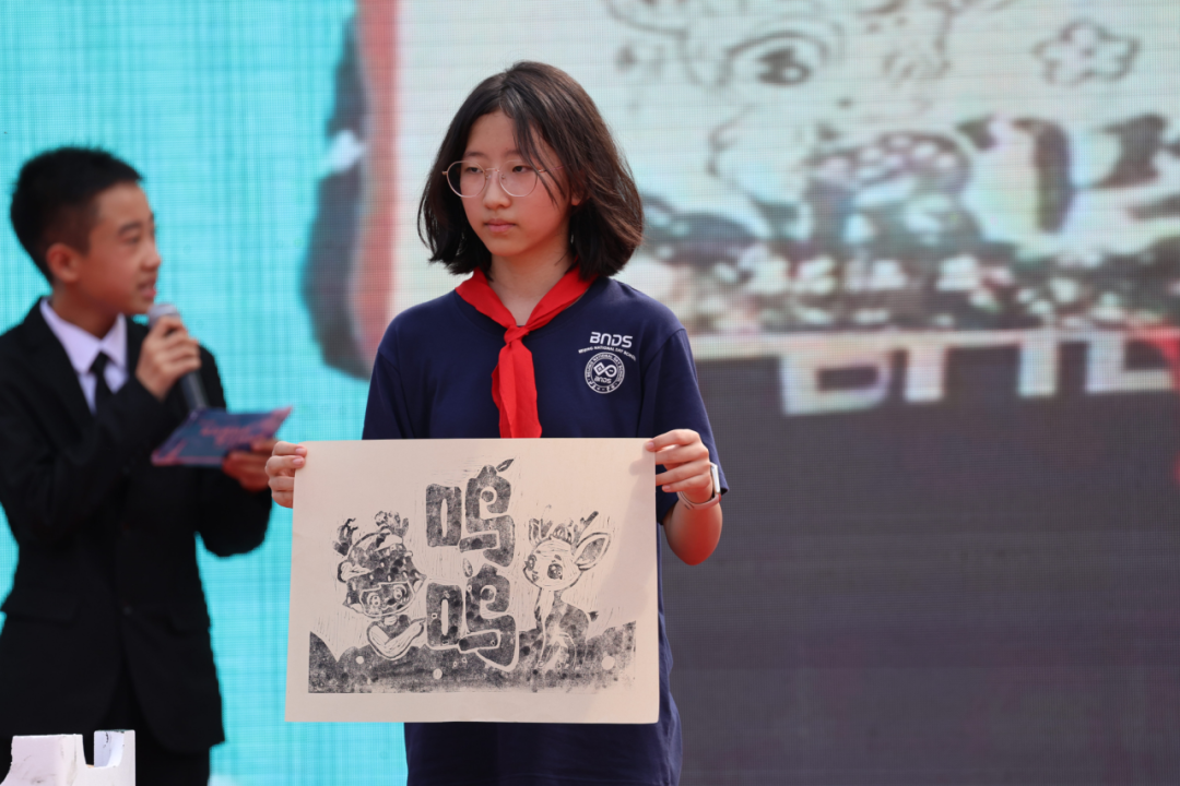 暑假中,同学们踊跃为小鹿起了很多名字。现场,陈颖丹、王子浩,以及小鹿印章设计者张诗棋同学,以拓印版画的方式,为我们揭晓了人气最高的一组名字:呦呦和鸣鸣。这组名字由初一年级的沈泽熙同学所取,出自《诗经.小雅.鹿鸣》“呦呦鹿鸣,食野之苹。我有嘉宾,鼓瑟吹笙”。希望小鹿来到智汇山谷,能无忧无虑,健康快乐的成长,同时祝愿山谷的精灵们成长成材,一鸣惊人。