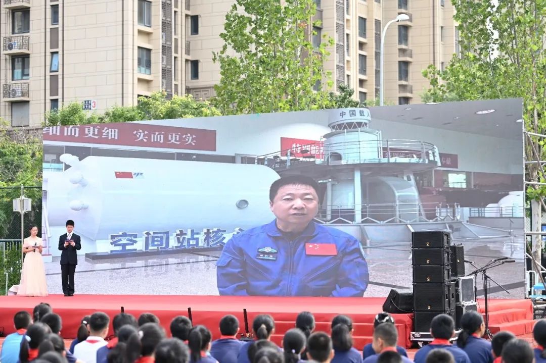 接着,主持人揭晓了今天来到现场的神秘嘉宾——长征五号系列运载火箭的副总设计师娄路亮。他上台为同学们做演讲,讲述了自己和团队为完成伟大的航天梦想,不断深耕学习,积累经验,最终实现梦想,为国家航天事业做出贡献的故事。