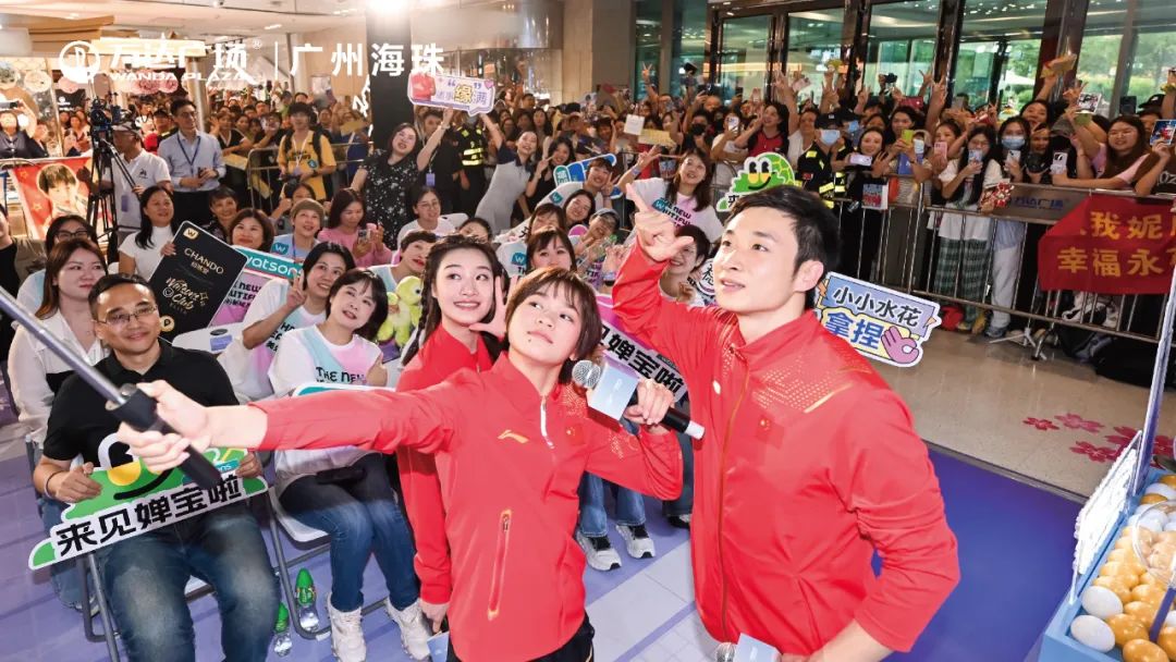 9月25日,跳水梦之队全红婵、昌雅妮、曹缘3名巴黎奥运冠军闪现万达商管南区广州海珠万达广场,出席“2024美在巴黎·跳水冠军见面会”。现场超千名顾客就这么水灵灵地和奥运冠军近距离接触了!而且不仅是见到“婵宝宝”这么简单哦!更有幸运的宝子跟奥运冠军一起进行有奖问答、记忆力挑战、互动合影等互动,真的是狠狠羡慕住了!