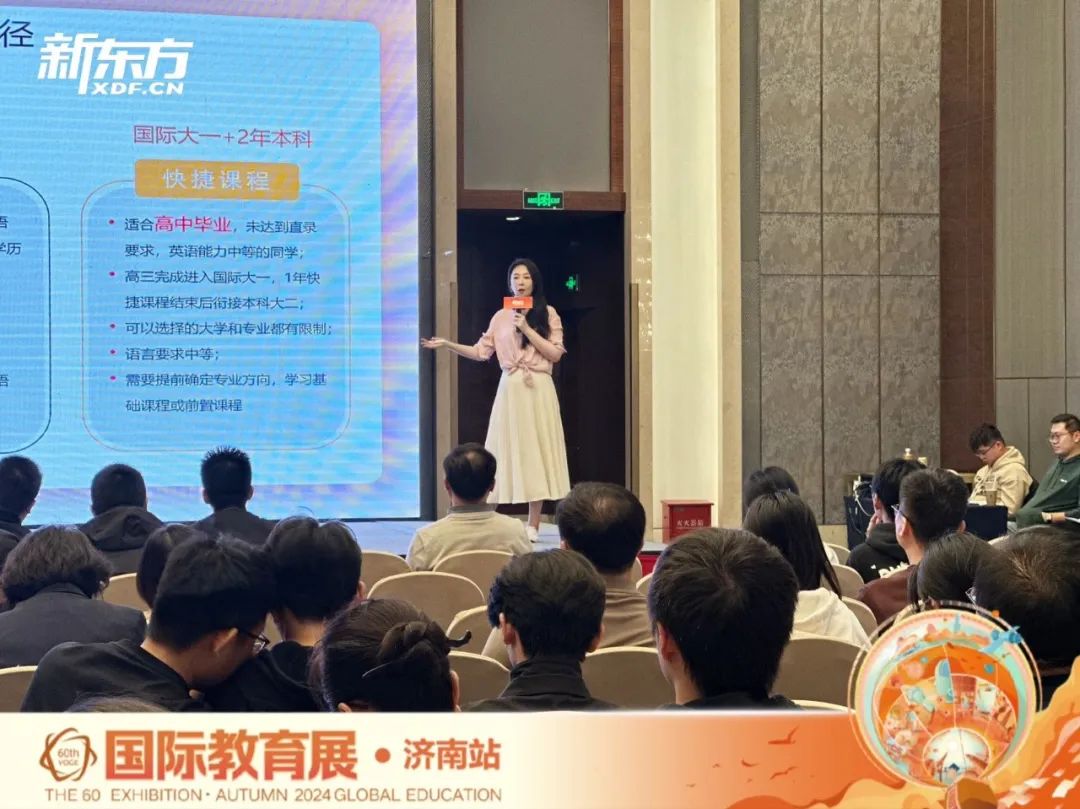 10月27日,新东方第60届国际教育展·济南站在泉城济南香格里拉酒店圆满落幕!现场氛围火爆,活动聚焦于当前国际教育家庭深切关注的几大核心议题:突破教育内卷的策略、多元升学路径探索、教育体系的选择、精准的留学规划、标化考试的备考策略,以及毕业生就业前景。通过新颖独特的视角,展会现场深入展开了一系列讲座与对话,多角度、全方位地为留学家庭答疑解惑。下午1:30,众多家长与学生已提早抵达活动现场,井然有序地排起长队等候签到,签到区域人头攒动,洋溢着热烈而期待的氛围。