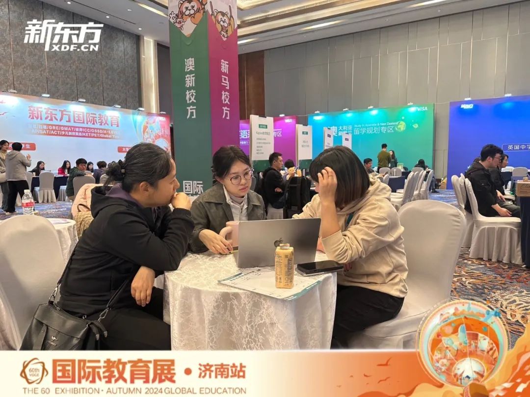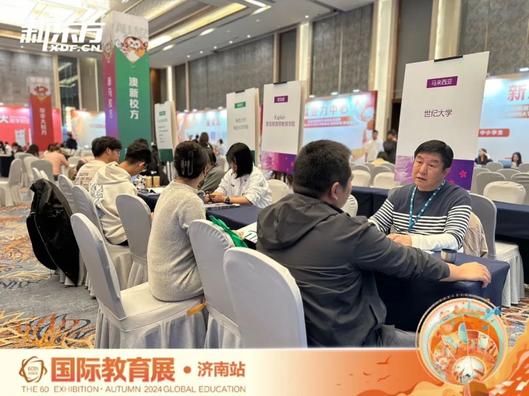 本次教育展现场特设新东方国际教育、新东方大学事业部、青岛新东方双语学校及新东方文旅等多个服务专区,全方位覆盖语言培训、国内升学指导、低龄国际教育规划及研学旅行等领域,为广大学子的深造之路提供多元化、专业化的支持与助力。