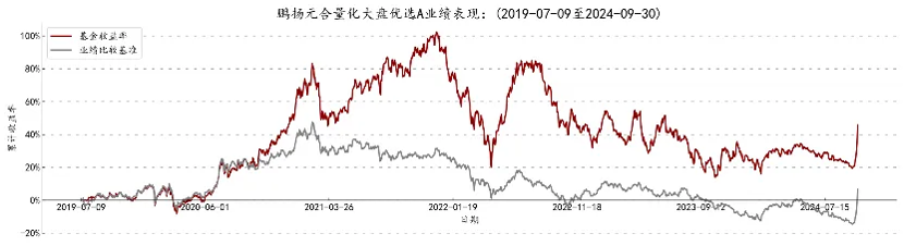 我们看最新数据,截至9月30日,鹏扬元合量化大盘优选近一年收益率17.38%,排名17/330,最大回撤14.42%,排名34/341,收益和风险指标双双进入前10%分位,领先市场上90%以上的同类基金。