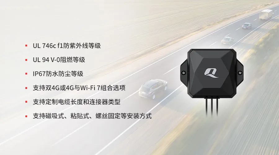 此外,该产品拥有灵活的应用选项,可提供2合1定制选项,支持如双4G或4G与Wi-Fi 7组合等配置,同时还可根据客户需求定制电缆长度和连接器类型。