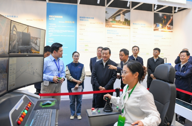 新装备、新方案助力中国建造。推动建筑业工业化、数字化、绿色化转型,“像造汽车一样造房子”正在变为现实。“助力中国建造”主题展区展示了智能建造系统解决方案、大国建造等全产业链多达70项的研发创新产品。移动储能设备、原位3D打印机设备、物联网智能安全管理系统、智能安全帽等科技感满满,空中造楼机、建筑工程北斗卫星定位装备、智能装配造桥机、造塔机、城市大直径竖井掘进装备、万吨级多功能试验系统等亮点十足。倪虹驻足观看许久,不时询问项目方案、智能装备的落地应用情况。他说,建筑装备研发设计、生产制造与其他行业息息相关,要积极推进数字化转型相关的技术研究与创新,探索智能建造领域的产品开拓与实施路径,不断擦亮“中国建造”金字招牌。