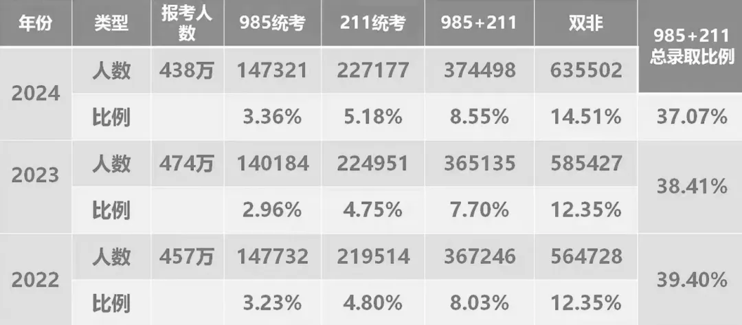 我们都知道「物以稀为贵」,但随着高等教育的发展,高校毕业生人数已经越来越多,根据教育部统计,2024年高校毕业生人数是1179万,同比增加21万。在如今就业竞争压力之下,“双非”院校的本科毕业生优势已大不如前。因此,这些同学要想提高自身竞争力,只有一个最优解:考上985的研究生,改写命运。——我是一个来自二本学校的学生,我能考985么?会不会有歧视?——双非本&985硕,和本科985相比,哪个更有竞争优势呢?——我已经是985硕了,为什么找工作很多HR还说我第一学历是二本?诸如此类的问题像一个怪圈,让大家不禁怀疑高考和考研的意义到底是什么,并不断的产生对未来的焦虑。那么,考研上岸985和高考考上985,两者有差距吗?差距又在哪里呢?今天就为大家展开讲讲。相信大家都会有这样的疑惑,每年的六月和十二月总牵动着千家万户的心,十年寒窗苦读,三年浴火重生,无论是高考,还是考研,都是一场持久的人生战争。