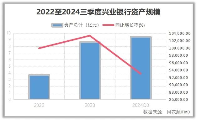 从资产规模来看,截至今年三季度末,兴业银行的资产总额达到103,074.28亿元,较上年末增长1.47%。其中,贷款余额达57,416.03亿元,较上年末增长5.14%。