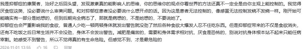 她不仅是一名抑郁症患者,还是一名厌食症患者。