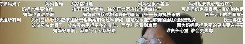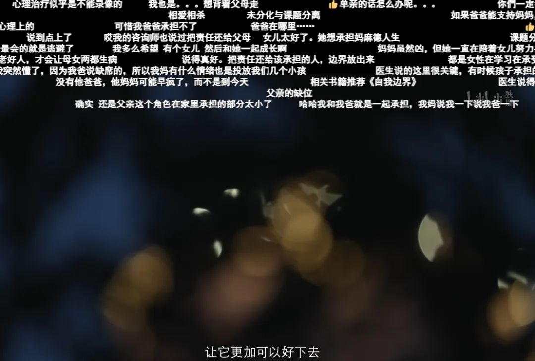 在悠扬和妈妈一起做家庭诊疗的片段中,弹幕说: