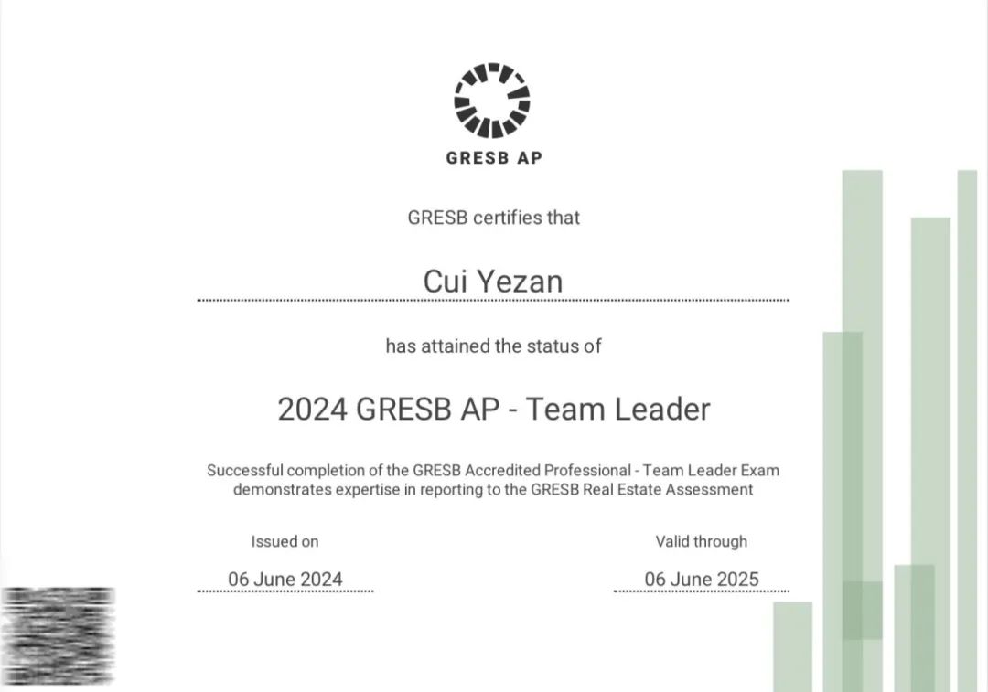 后续为维持证书的有效,需查看每年GRESB评级标准更新情况,并通过相应的考试。