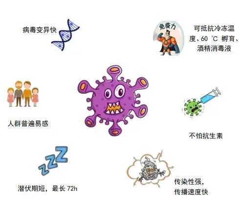 1.传染性强:诺如病毒可以通过身体接触、水源、食物、呼吸等途径传播。 2.群发性强:多为集体发病,幼儿园这样的人群密集场所尤其容易群发。 3.儿童易感染:学龄前儿童尤其容易感染诺如病毒,在我国5岁以下的腹泻儿童中,诺如病毒检出率高达15%。 4.无特效药或疫苗:目前还未出现针对诺如病毒的特效药或疫苗。 5.自限性强:诺如病毒有明显的自限性,即两三天后会自己好转,家长不必太过恐慌。