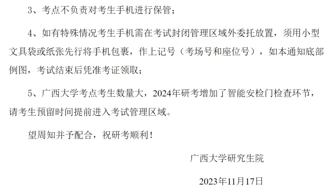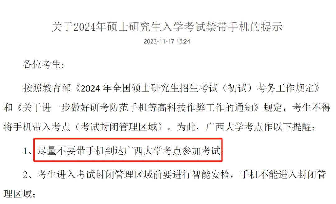 解答:你这个问到我了,大家讨论一下能带钱不…… 别的东西都有疑问,不确定各地区具体要求,但是手机!是绝对不能带的! 这不,去年广西大学研究生院专门发布提示,考场不允许带手机!如果带了考点也不负责保管!大家要注意啊!
