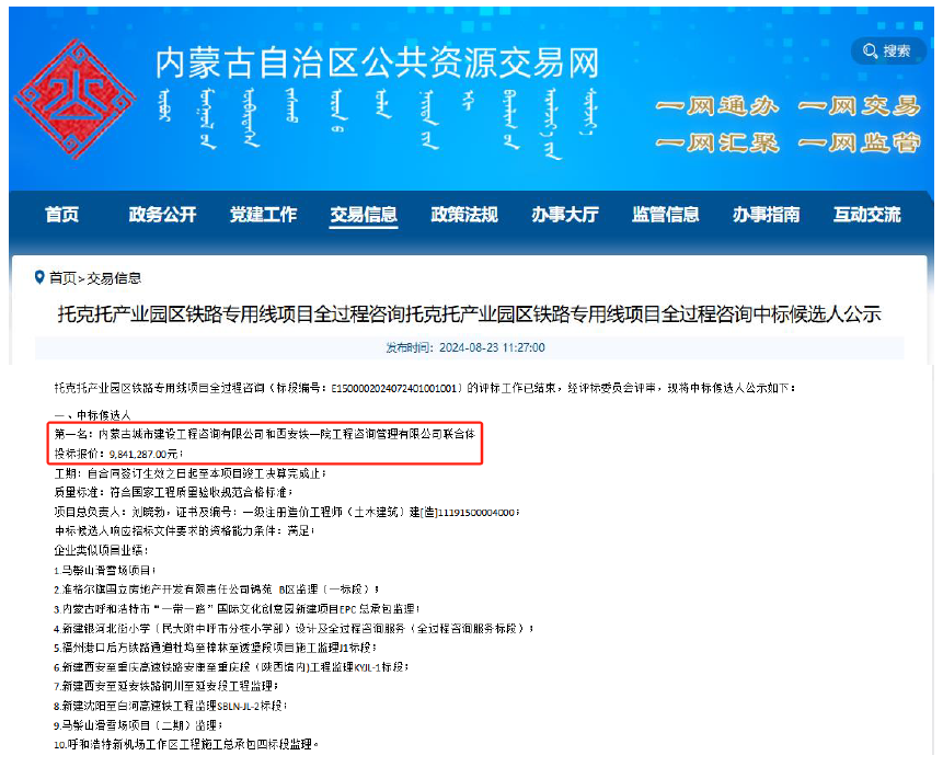 8月26日,市交通集团城建咨询公司凭借卓越的企业业绩和良好的行业信誉,成功中标托克托产业园区铁路专用线项目全过程咨询服务,中标金额达984.13万元,开创公司单体项目中标金额历史新高!
