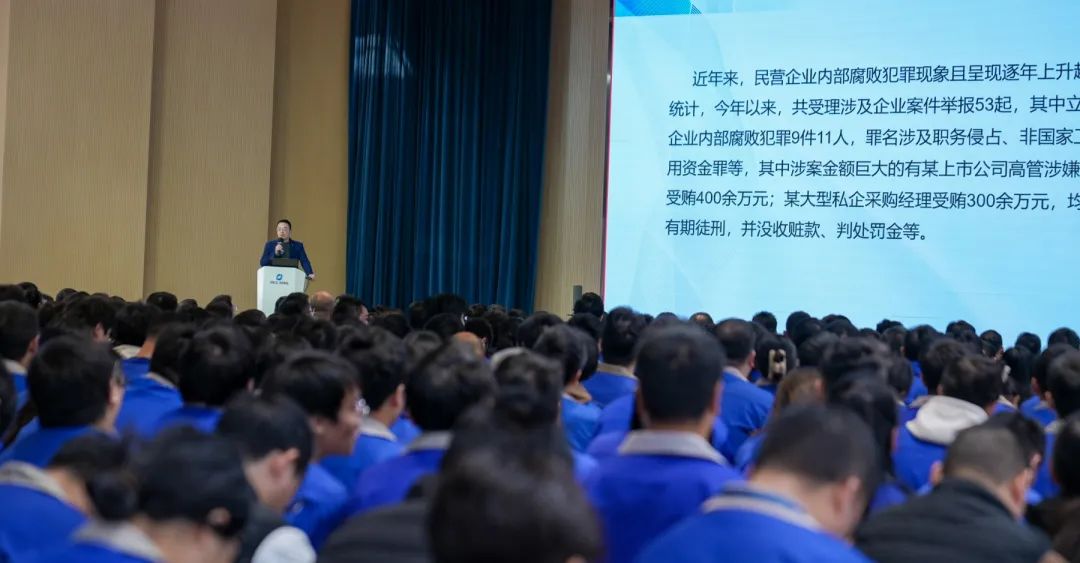 在日益激烈的市场竞争环境下,廉洁自律已越来越成为企业文化持续健康发展的基石,商业秘密也逐渐成为了企业最核心和最具有竞争力的无形财富。为提高广大员工廉洁自律及商业秘密保护意识,做到自觉廉洁从业,有效保护公司财产,捷昌于2024年11月23日以莱盛路五楼文化大礼堂为主会场,组织了线上线下共1600多名员工参与本次廉洁自律及商业秘密保护专题培训活动。