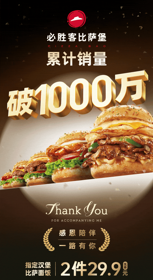 2024年4月22日至2024年11月17日期间,必胜客比萨堡产品累计共售出超过1000万个。