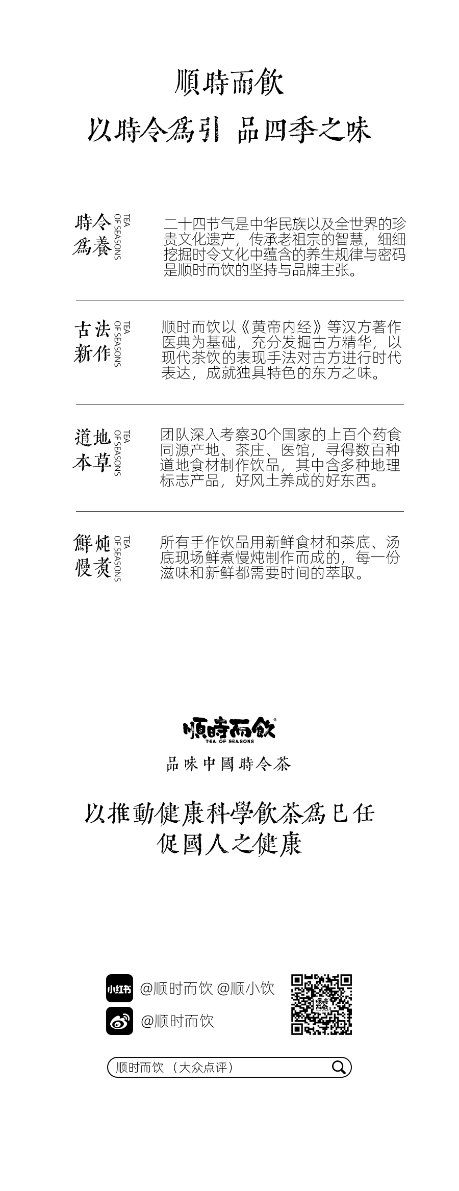 从艺术到文化,从老字号到新业态,顺时而饮从品牌创立伊始便力求打造一个不同品牌和文化交融的全新商业模式,用东方本草智慧的魅力重新定义轻养生活,拥抱年轻群体和市场。