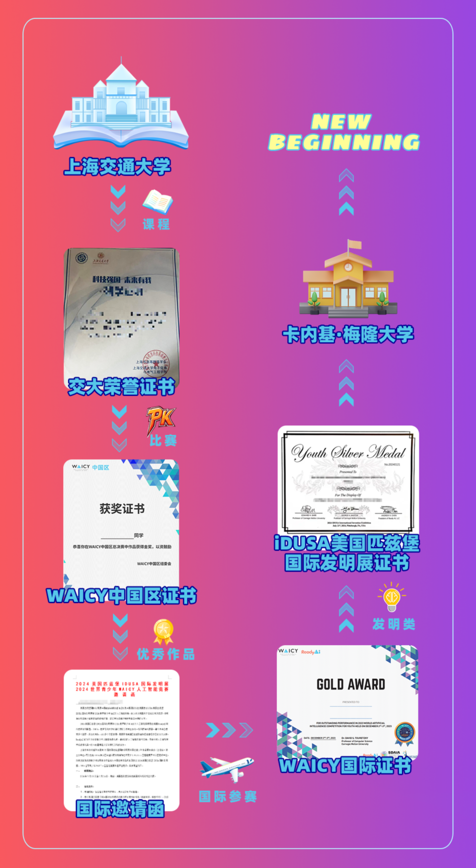 所有顺利完成本次营地活动并达到考核要求的学生,将荣获上海交大认证的荣誉证书,还将有机会获得世界青少年人工智能赛事WAICY相关证书,及WAICY国际参赛邀请函等,含金量超高。