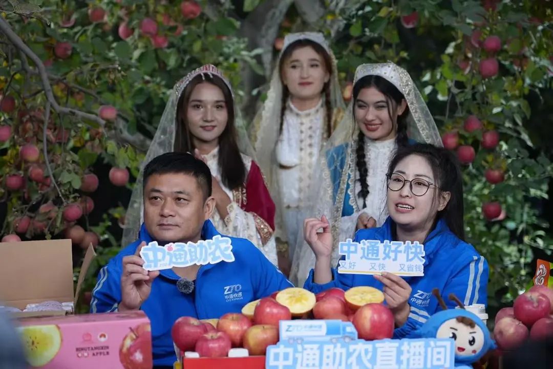 给“冰雹果”一个证明的机会除了帮助农民增收,本次带货直播还有一层更现实的意义。阿克苏红旗坡三分场九队的马铁英此前对直播的到来非常激动。“今年,我家果园种植的苹果长势都特别好,肯定能买个好价钱!”然而,好事多磨——一场突如其来的冰雹让他的笑脸转眼变愁容,“树上最好的苹果被打伤,品相变差,但实际上日常吃没问题,完全不影响口感。”在这样的情况下,如何更好地卖出冰雹果是果农急需解决的问题,直播恰好解决了他们的痛点、难点。“我们要帮助农民增加销售渠道,就要把优质果和冰雹果区分开,由中通直播选品、运输、投递,跳过中间商销售,这样既能增加新疆果农们的整体收入,又能让全国的消费者品尝到阿克苏的好苹果。”新疆管理中心总经理喻鹏也来到了直播间,为冰雹果“代言”。为保证运输时效和质量,新疆中通统一为阿克苏苹果定制了专属苹果包材,选用中通快递旗下高端时效产品“中通好快”运输,让每一件阿克苏苹果都能快马加鞭、日夜兼程到达目的地。马铁英终于又笑了:“我放心了!以前遇到这种天气,我都急得在家到处打电话。今年中通助农直播团队帮我把我家所有的苹果都卖掉了,正是因为这个直播间,给了我们和消费者直接对话的机会,让我能够跟大家讲明白优质果和冰雹果的区别,让大家了解我们的难处,知道品相不好的原因,这才让传统渠道不好卖的、卖不出好价钱的果子以合理的价格卖掉。”
