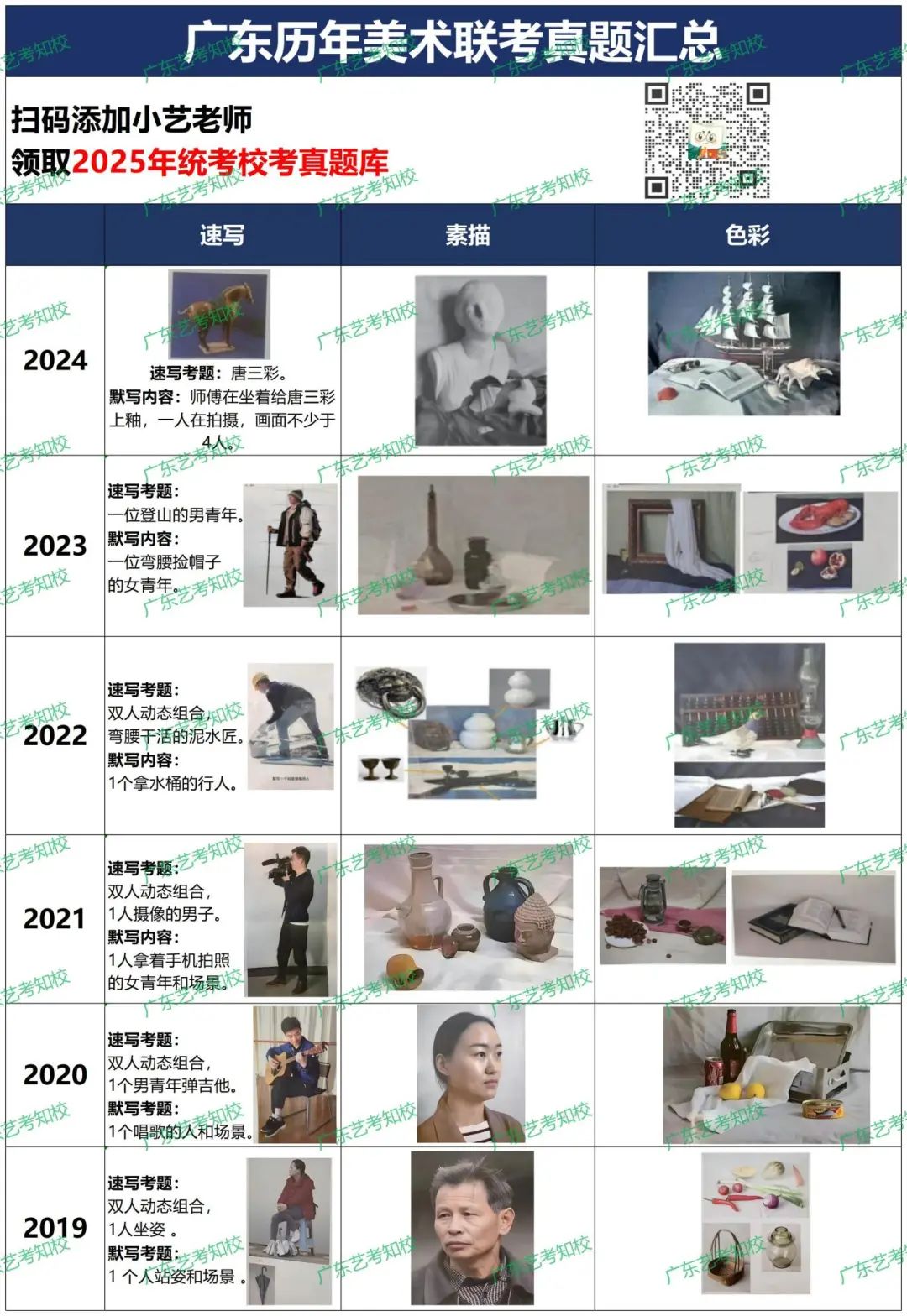 以上就是最近几年广东美术联考真题,大家觉得2025年考题会考什么?欢迎留言发表你的想法!提前预祝大家联考顺利!