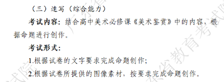 速写考试内容:结合高中美术必修课《美术鉴赏》中的内容,根据命题进行创作。