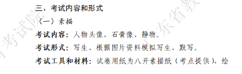 素描考试内容:人物头像、石膏像、静物;今年广东省联考的考纲无论是素描考题还是色彩考题,人物头像这一部分被放在了最前面。结合过去三年广东省的考试内容,今年素描考察人物头像的可能性非常高!