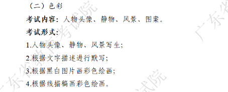 色彩考试内容:人物头像、静物、风景、图案;色彩方面今年的考题可能会集中在人物头像和风景画上。