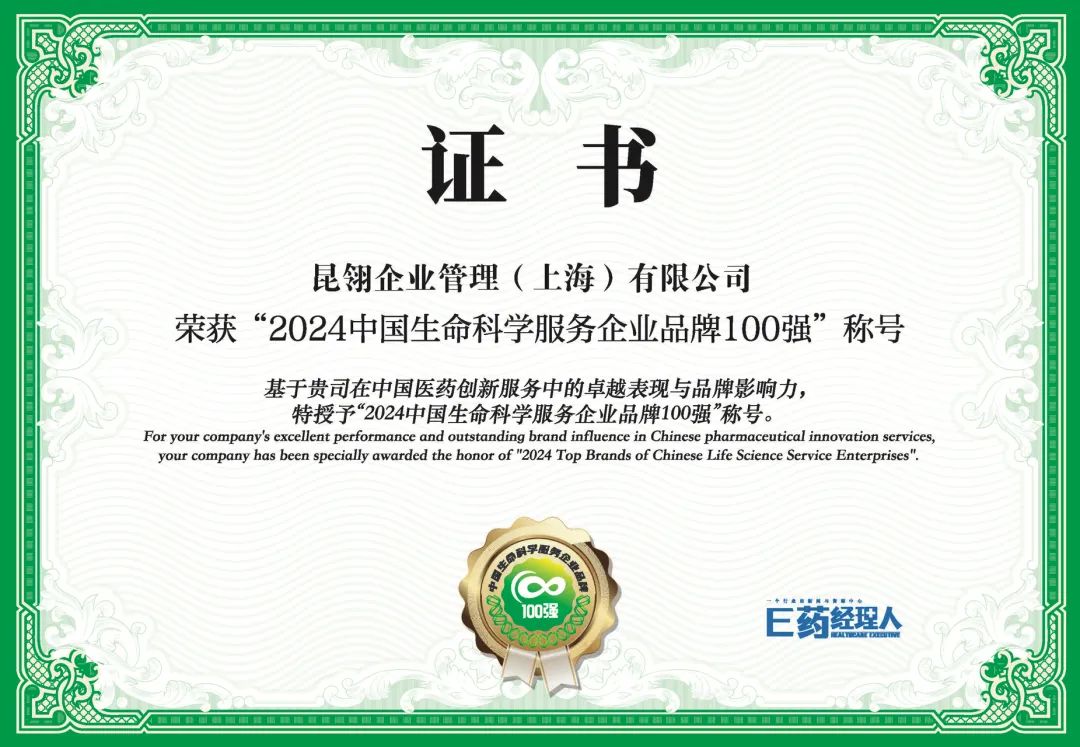 在备受瞩目的“2024中国生命科学服务企业品牌100强”评选中,昆翎凭借其卓越的服务实力和品牌影响力,成功蝉联此称号。该榜单以市值(估值)与客户覆盖为核心评选标准,全面考量企业在生命科学服务领域的综合表现。昆翎能够连续两年获得这一殊荣,也充分验证了其在行业内的领先地位和广泛影响力。