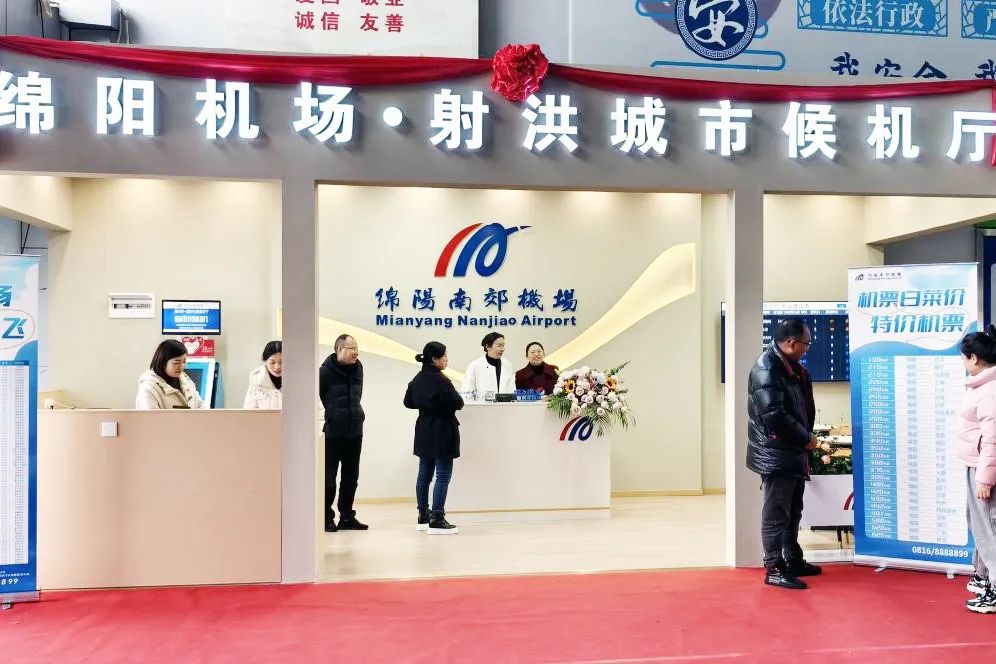 12月8日上午,位于射洪客运站的绵阳机场射洪城市候机厅投入试运营,绵阳市交通运输局、射洪市交通运输局、富临射洪运业、绵阳机场集团等单位负责人共同出席了投运仪式。