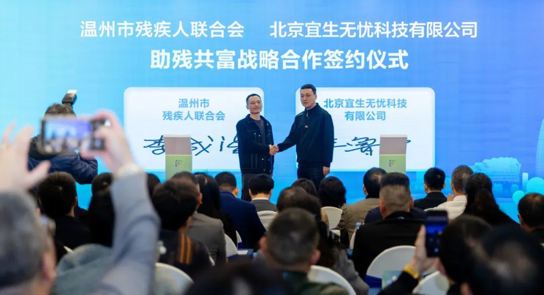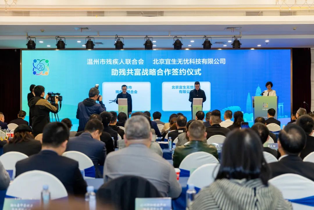随后,温州市残联与北京宜生无忧科技有限公司进行了助残共富战略合作签约,双方将共同推动残疾人创业就业项目的发展,为残疾人提供更多的支持和帮助。