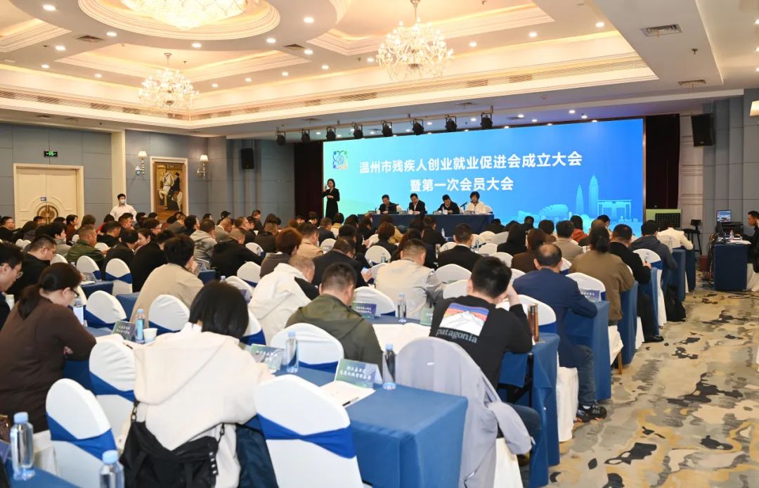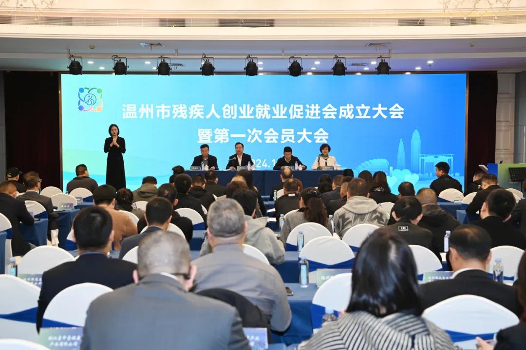 会上成立了温州市残疾人创业就业促进会。温州市残联党组书记、理事长章万真发表致辞并围绕提高服务残疾人水平、积极引领社会力量、提供优质就业服务等方面提出建议。他表示,残疾人创业就业促进会的成立将为残疾人创业提供更多支持和帮助,将全力支持促进会的工作,为残疾人创业创造更好的环境和条件。
