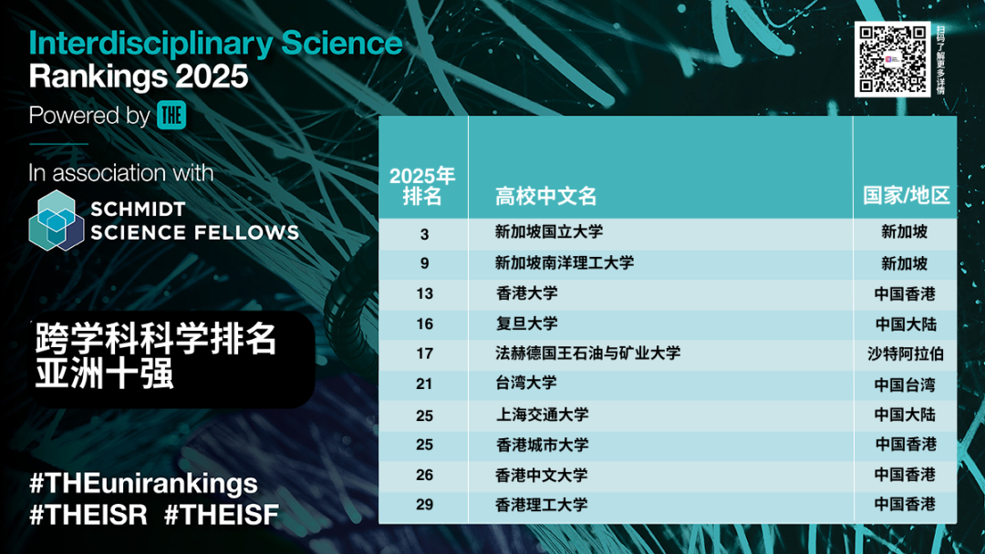 当然,除美国外,亚洲高校也展现了其在跨学科科学领域的卓越表现。