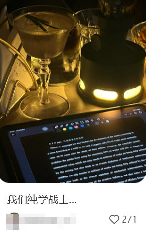 除此之外,一些喜静的同学则会选择一家环境惬意的咖啡店,开启手机延时摄影,假装自己在录综艺节目《令人心动的final》。