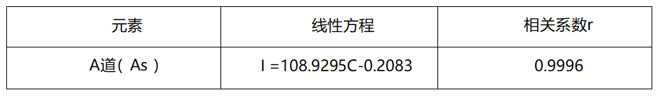 将标准溶液依次进样 ,以元素浓度为横坐标 ,信号强度为纵坐标绘制标准曲线, 线性图见图 1 ,线性及相关系数见表 3。