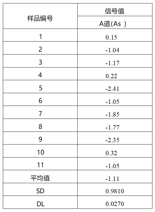 连续测量 11 次标准空白溶液,计算仪器检出限见表4。