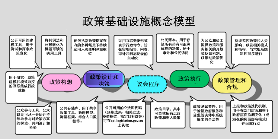 当前管理政策基础设施的方法通常零散无序,应用也缺乏一致性,这是因为不同的行为主体使用不同的工具来制定、更新、执行和评估政策。由于缺乏共享或统一的政策基础设施,不同行为主体对政策有着不同的解读,导致政策的设计与实际执行之间存在显著的差距,并且无法长期有效且持续地优化政策成果。