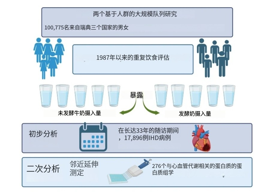 女性每日摄入>300毫升的非发酵牛奶,患缺血性心脏病的发病风险会显著增加。不过,与发酵牛奶(酸奶)无关。缺血性心脏病 (IHD) 已成为全球范围内导致寿命损失的主要原因。而健康的饮食,对预防心血管疾病至关重要。该研究旨在探究乳制品对缺血性心脏病的影响。该研究基于两项瑞典前瞻性队列研究中的100775名参与者,在长达33年的随访中,分析非发酵乳或发酵乳摄入量对缺血性心脏病和心肌梗塞的关系。