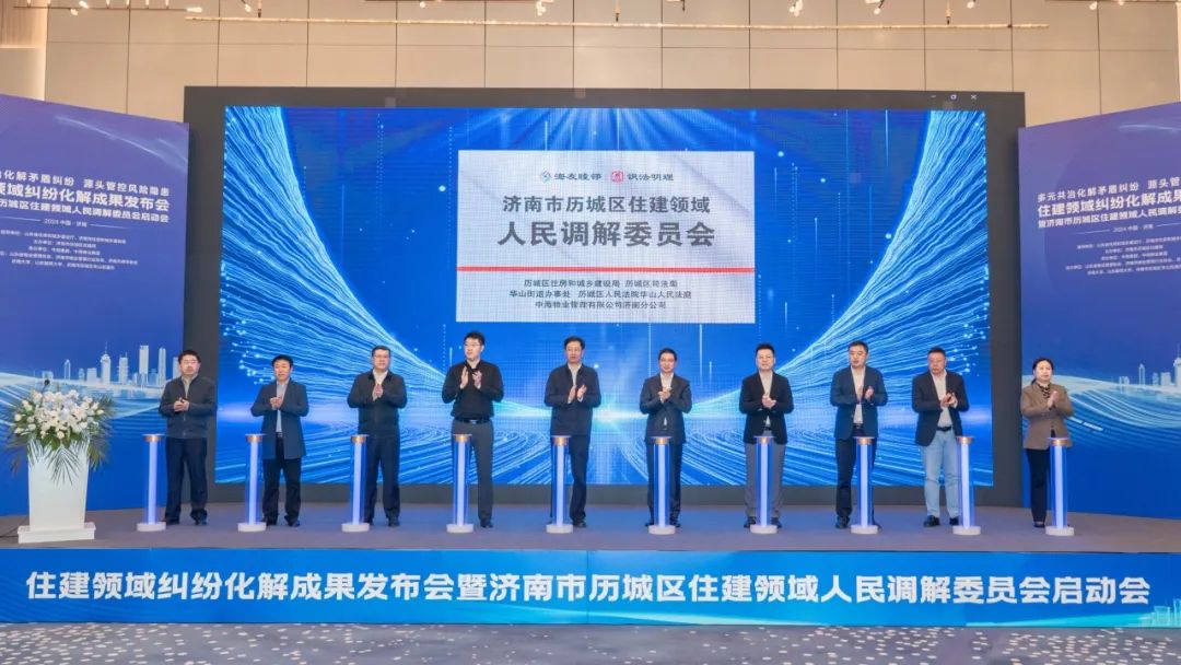 11月22日,住建领域纠纷化解成果发布会暨济南市历城区住建领域人民调解委员会启动会在济南举行。山东省住房和城乡建设厅党组成员、副厅长侯晓滨,中海集团董事、副总经理、财务总监、总法律顾问、首席合规官巢刚,中海集团董事、中海物业集团董事局主席张贵清,中国物业管理协会副秘书长刘寅坤,济南市住房和城乡建设局、济南市历城区住房和城乡建设局、济南市历城区司法局、山东省物协、济南市物协、街道办事处、共建高校、律所等单位相关负责人出席。