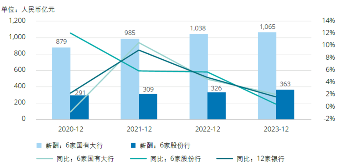 图:2020-2023年12家银行薪酬总额均值
