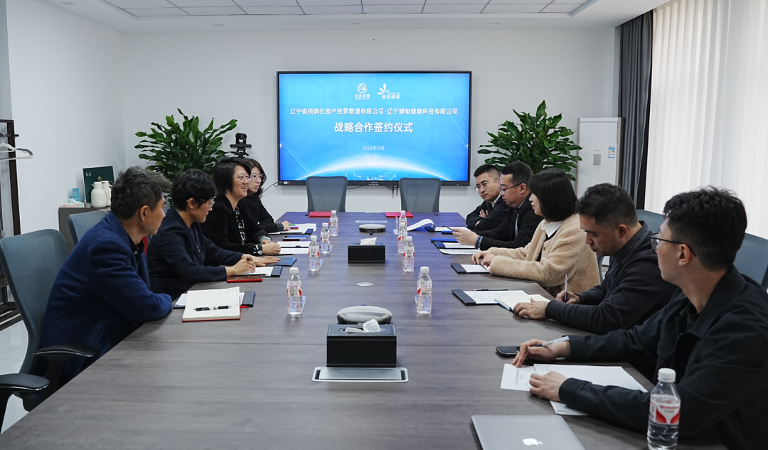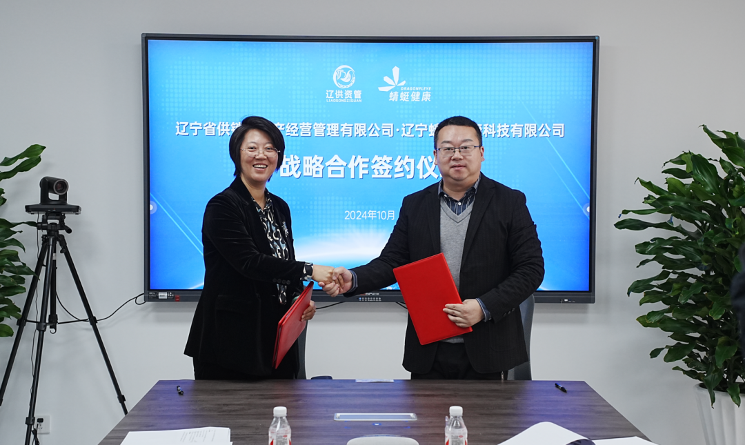 10月25日,辽宁蜻蜓健康科技有限公司与辽宁省供销社资产经营管理有限公司战略合作签约仪式在沈阳举行。辽宁省供销社资产经营管理有限公司总经理赵鹏飞、财务部长徐宝和辽宁蜻蜓健康科技有限公司常务副总经理徐玲、健康管理事业部副总经理刘爱侠等相关领导出席仪式。