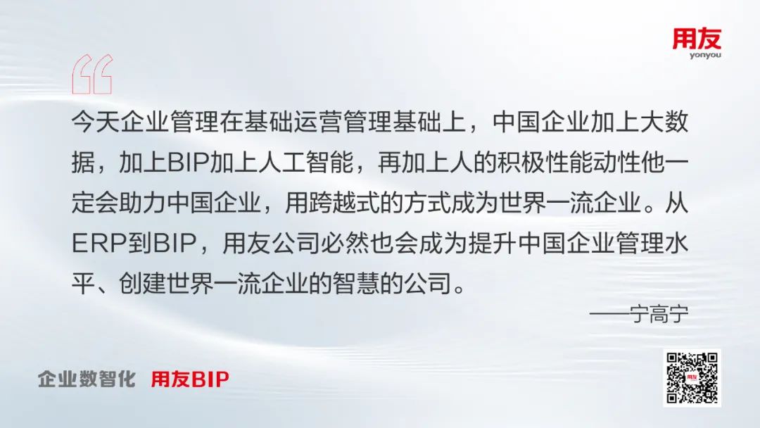 耳熟能详的“企业数智化,用友BIP”,更是体现了用友致力于通过数字化、智能化技术,服务企业管理变革和商业创新的经营理念。