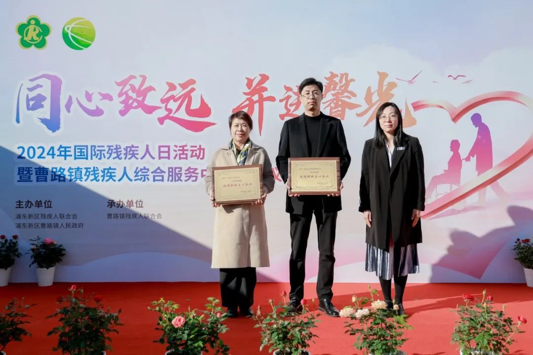 11月29日,在第33个国际残疾人日来临之际,上海市浦东新区曹路镇举办了主题为“同心致远,并进馨光”的2024年国际残疾人日暨曹路镇残疾人综合服务中心揭牌仪式。作为受邀嘉宾,北京宜生无忧科技有限公司有幸见证了这一重要时刻,并荣获了“扶残助残爱心企业”的殊荣。